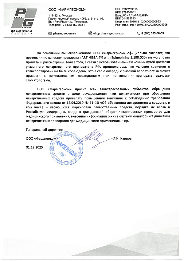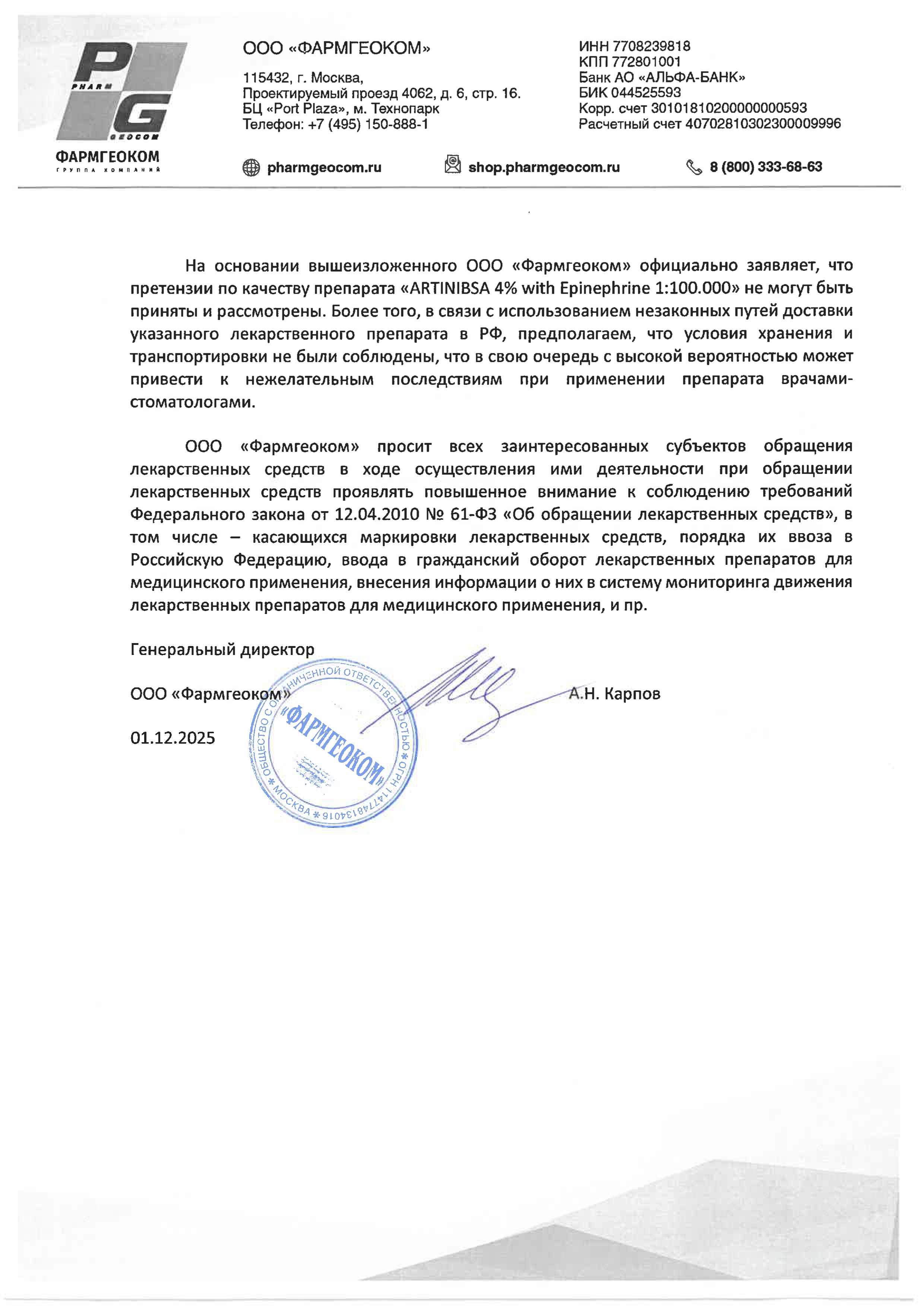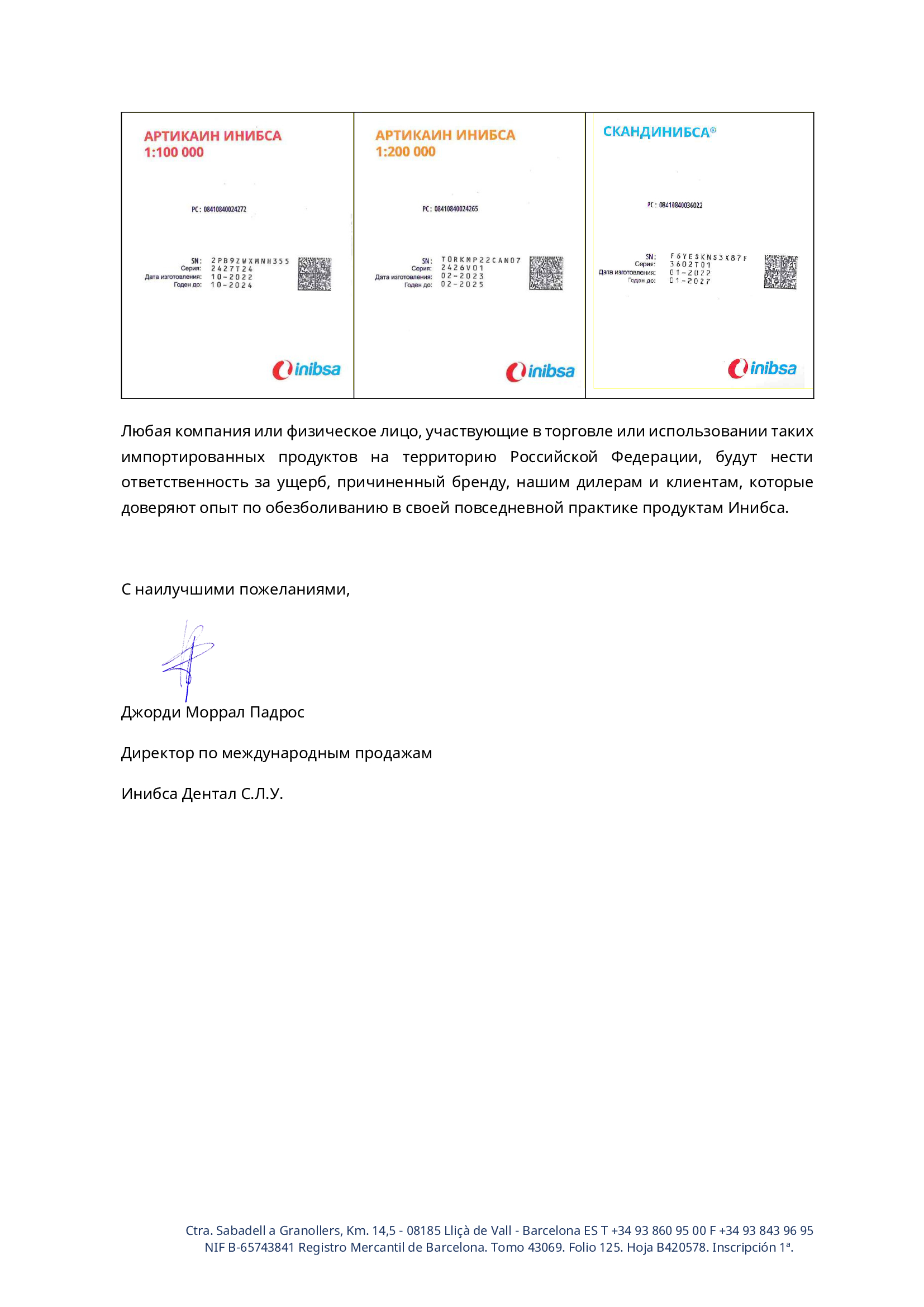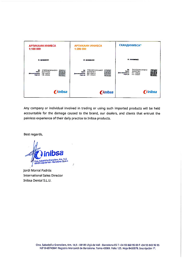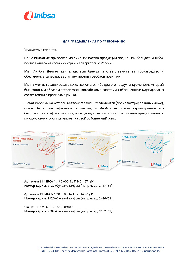 - Глобальный эксперт: Inibsa (Испания) — мировой лидер в производстве местных анестетиков и 2-й по величине производитель карпульных анестетиков в мире.