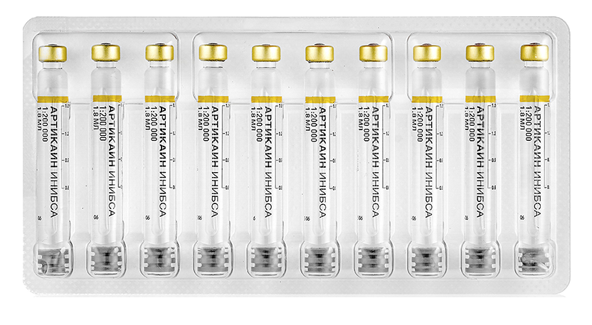 Стоматологический анестетик нового поколения производится на одном из самых крупных фармацевтических заводов в Европе. Испанская компания Inibsa является лидирующим производителем местных анестетиков в карпулах и занимает второе место по их производству в мире. Производственные мощности позволяют производить более 300 млн. карпул в год. Артикаин бренда Inibsa — это гарантия качества действующих веществ в составе лекарственных препаратов.. Анестетик представлен в форме одноразового картриджа. Проведение местной анестезии с использованием артикаина — «золотой стандарт» обезболивания для беременных и кормящих женщин, пожилых людей и детей с 4 лет.Как сделать заказ?
