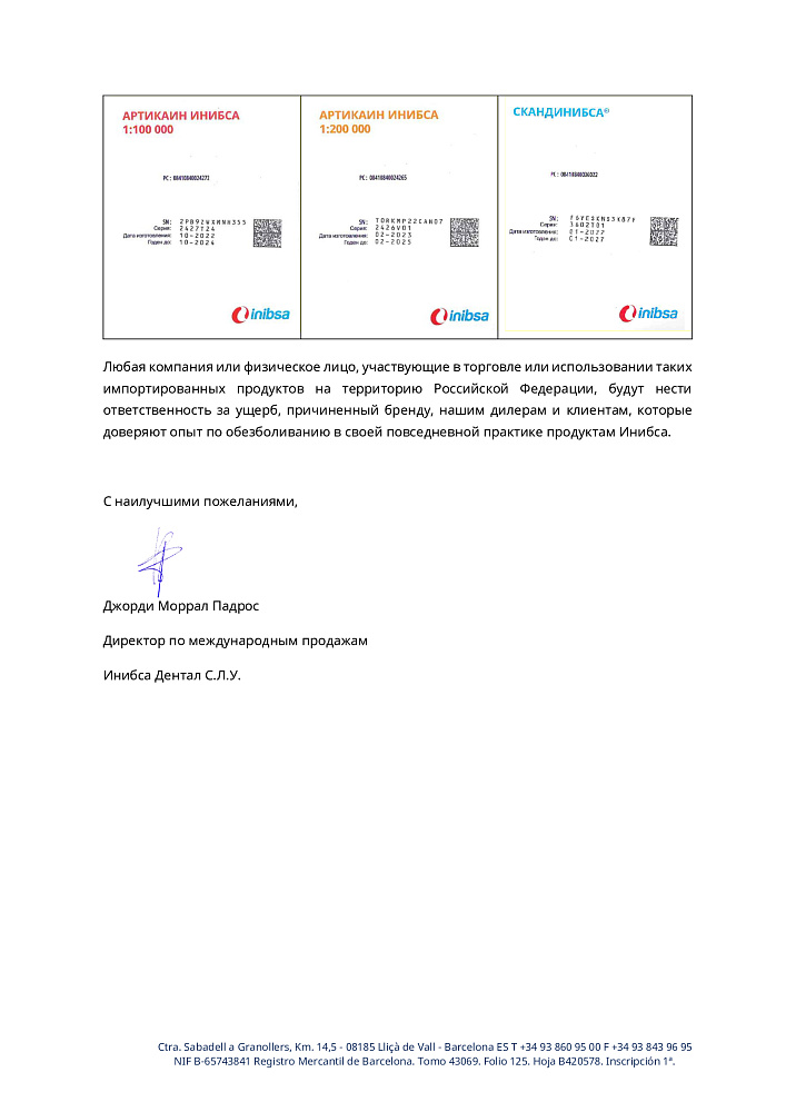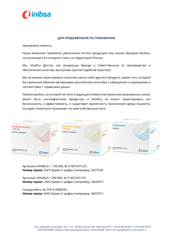Показания: для местной (инфильтрационной и проводниковой) анестезии в стоматологии.